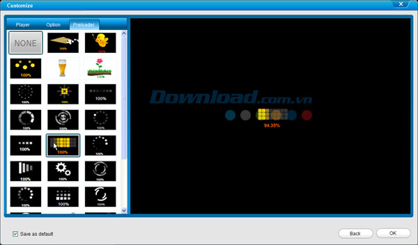Bạn có thể lựa chọn preloader yêu thích của mình từ những cái được đính kèm. Đơn giản, nhấp chuột vào một cái mà mình thích và sẽ nhìn thấy hiệu ứng của nó trong thời gian thực.